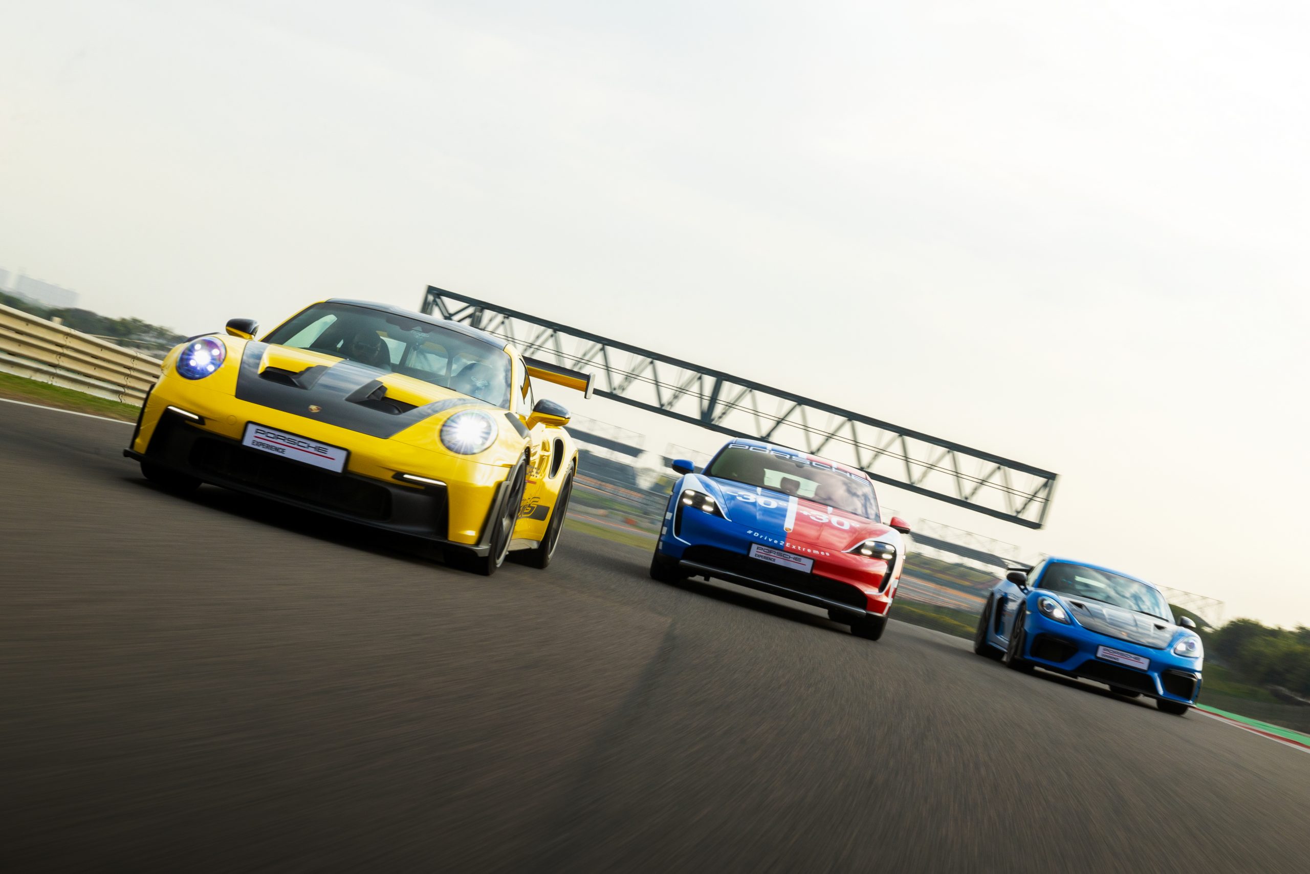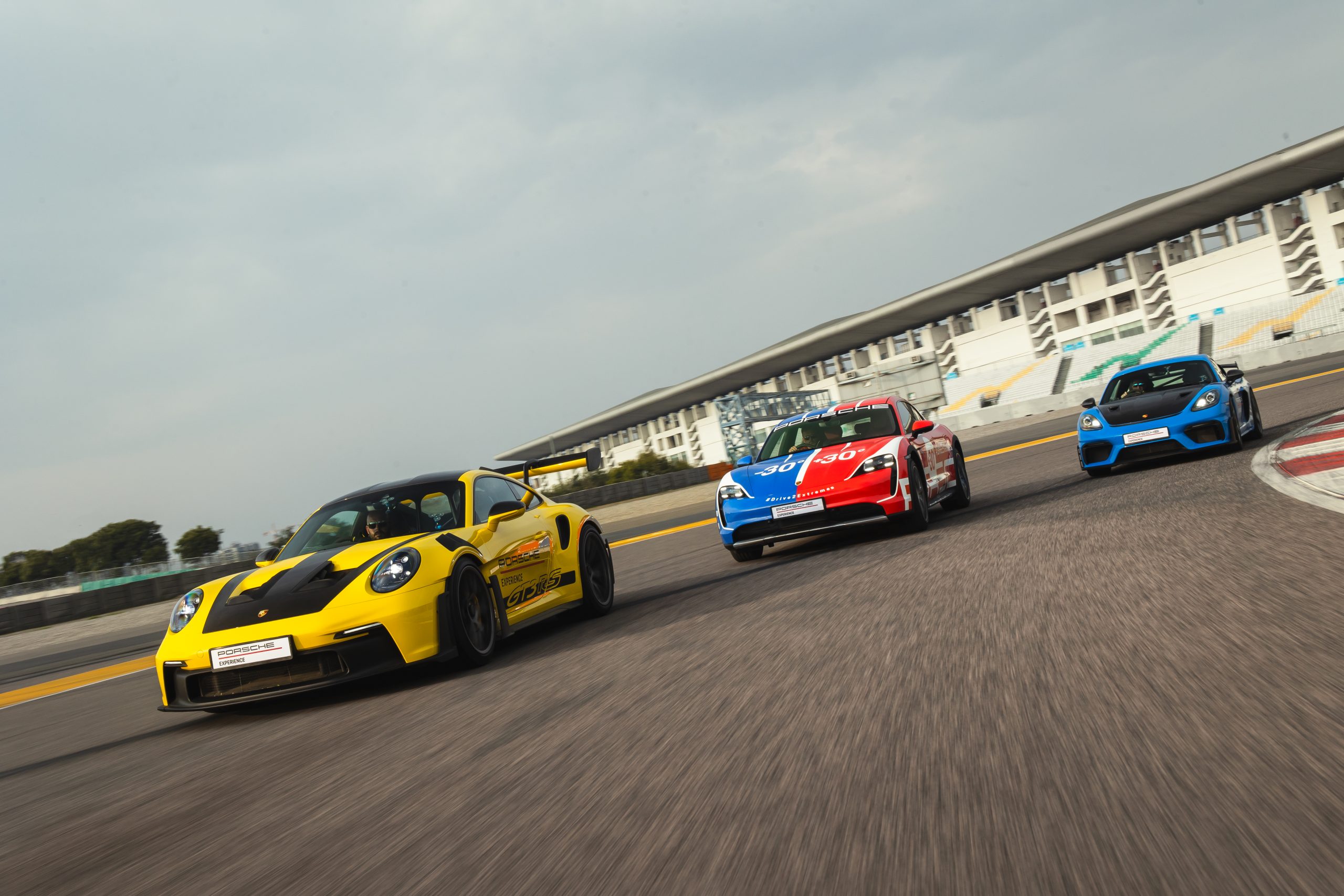 Suddenly, the human cacophony was silenced. The perkiness of my feet was overcome by a calming halt. The ‘Shark Blue’ Cayman GT4 RS and ‘Racing Yellow’ 911 GT3 RS emerged from behind the garage door – inching slowly, quite the contrast to the reason for their existence: speed.
