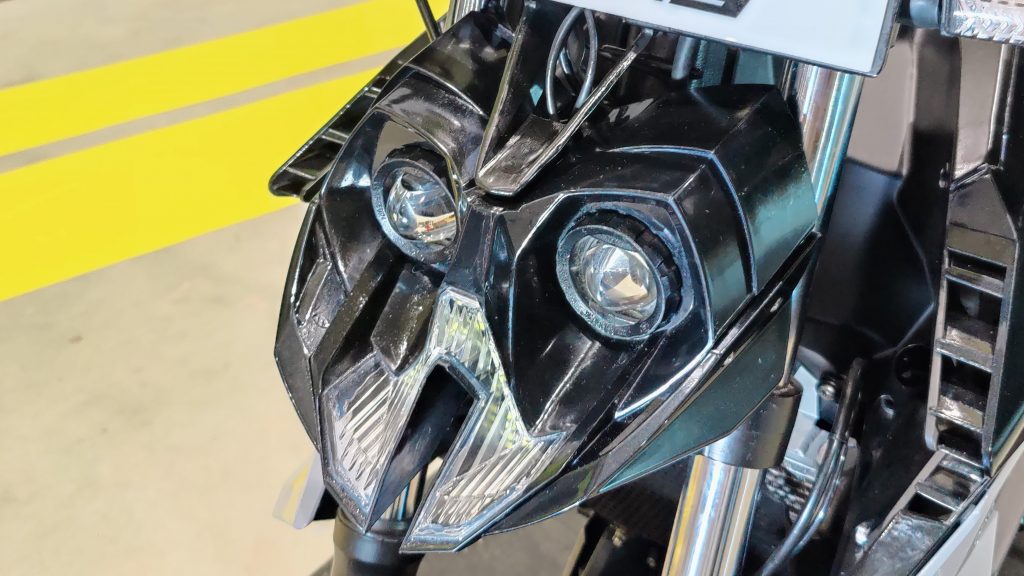 Straight off the bat, the Mantis makes a strong impression with its styling. The streetfighter design works well and makes the bike look thoroughly modern. It stands out in the crowd, for the right reasons. On closer inspection though, I noticed a few elements that elicited a mixed reaction. For example, the headlamp, with its insectoid-cum-transformer robot design, looks a little too unconventional and may not be everyoneโs cup of tea. But look at it enough number of times and it might grow on you, like it did on me. Above the battery pack and around the charging port, where the fuel tank sits on a conventional ICE motorcycle, the body features cavities on either side. While it looks fine, itโs a bit difficult to find the logic behind this design execution. Other than these body parts, nothing else sticks out on the bike.
