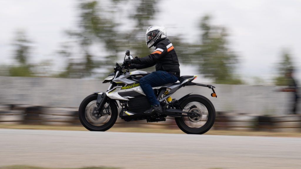On the track, the Mantis performed well, if not exceptional. The powertrain is tuned to offer very linear acceleration from 0-20km/h. After this band, the power delivery becomes much healthier. So, the bike feels lively on the straights and acceleration from the get-go does not feel intimidating, which could be a plus point for novice riders. The track allowed me to test the bikeโs braking ability nicely, which revealed a chink in its armour โ the ABS calibration. The bike gets single-channel ABS and discs on both ends. While the front brakes were effective, the judder emanating from the ABS could be felt in the handlebar, especially during hard braking. Another problem area I spotted was overheating โ the temperature light went off even before I could complete the first lap. In this case, the system reduces the bikeโs power output to protect the powertrain from any damage. However, the Orxa team assured me that both issues can be resolved via some tuning tweaks and calibration changes.