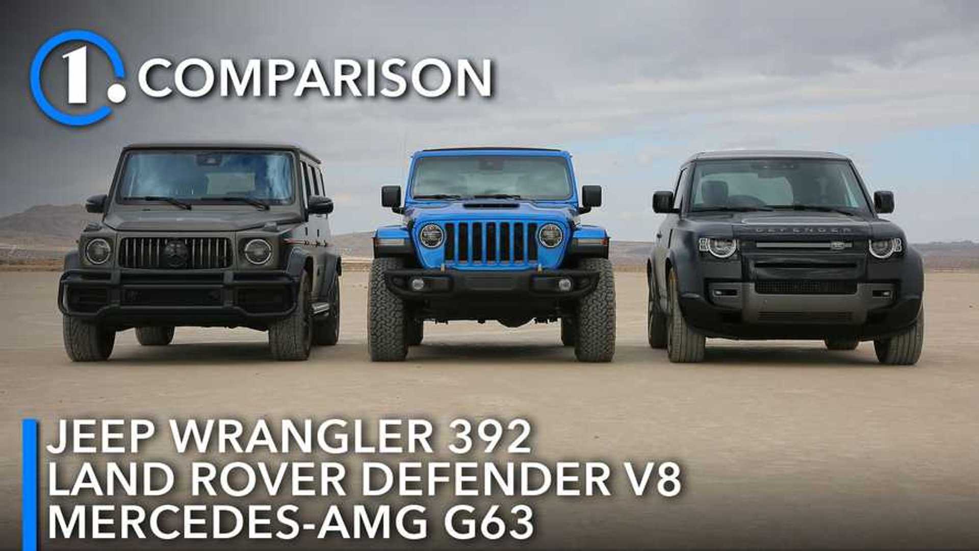 | 2022 Jeep Wrangler Rubicon 392 | 2022 Land Rover Defender 90 V8 Carpathian Edition | 2021 Mercedes-AMG G63 | |
