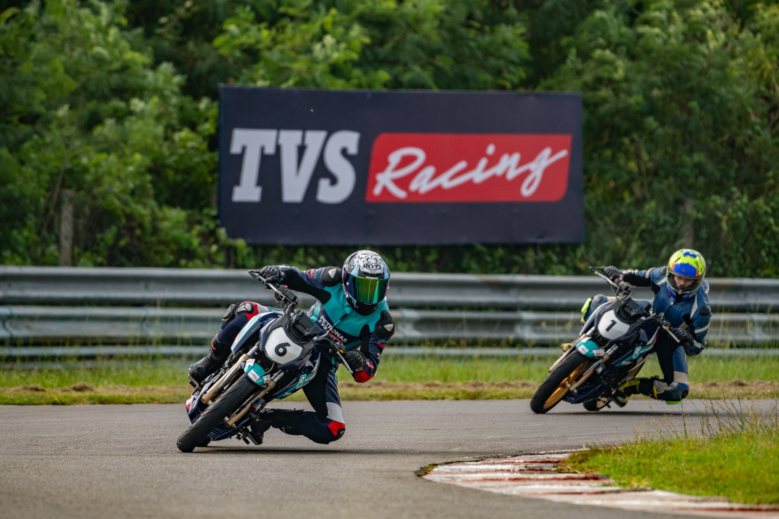 For this round, bikes are allotted through a ballot. By the end of the first lap, I spotted a potential problem on my bike (#7). While it seemed to perform fine in all other gears, in fifth gear, the performance seemed to plateau, and the bike felt slower than usual on the straights. Post the practice session, I gave this feedback and the TVS mechanics sprang into action. The entire clutch assembly was replaced. When I took the bike out for the qualifying session, not only did I get the desired level of performance, but the clutch lever also became lighter, which meant a lesser load on my left hand. The new clutch also contributed to better acceleration in lower gears. I wasn’t surprised when I managed to lop off a couple of seconds off my lap times.