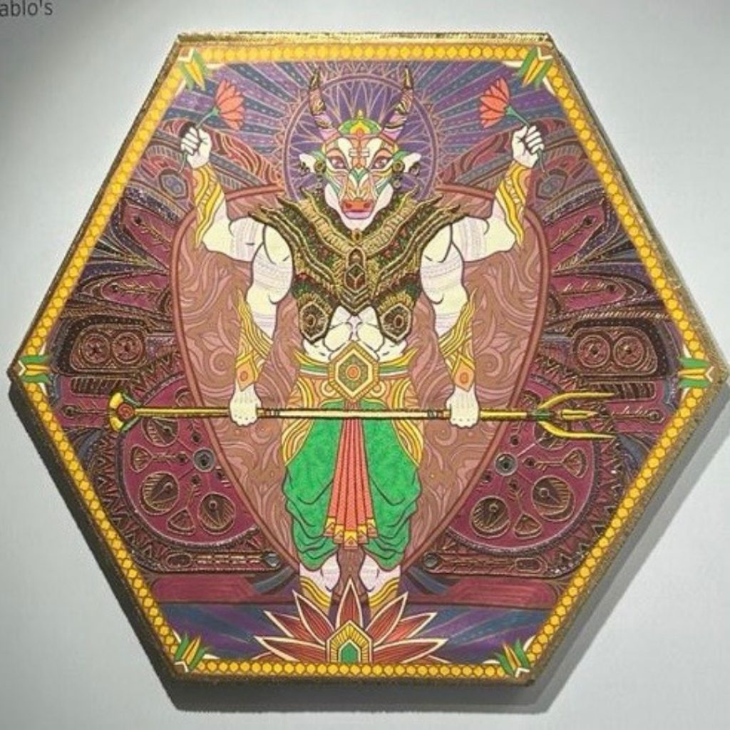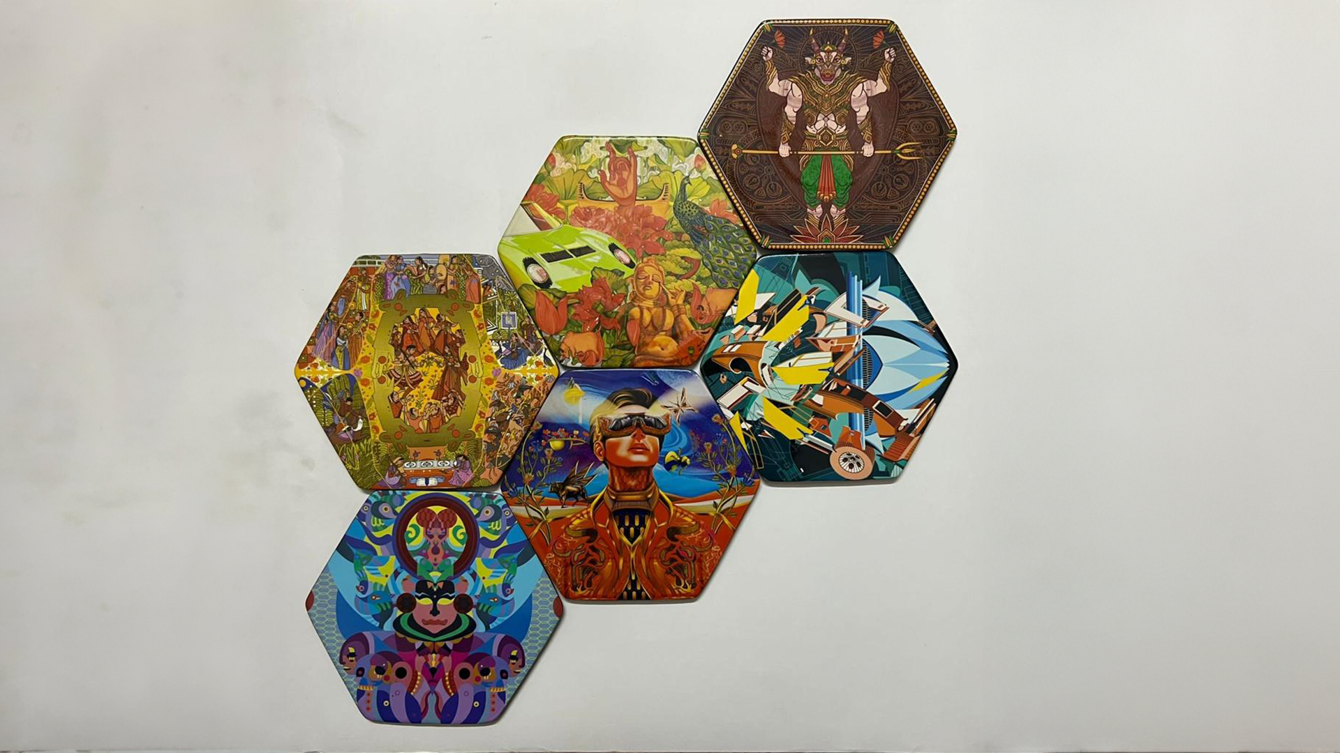 These six remarkable masterpieces, painted on hexagonal canvases, serve as a celebration of Lamborghini’s six successful decades in more than just six ways. Each artist approached the project with a unique perspective, interpreting and rendering onto the canvas a distinctive facet of the whole. The artisans then added their own dimension to each artwork, all while remaining faithful to the larger narrative that seeks to harmonise the design language of Lamborghini with the essence of Sadanga.