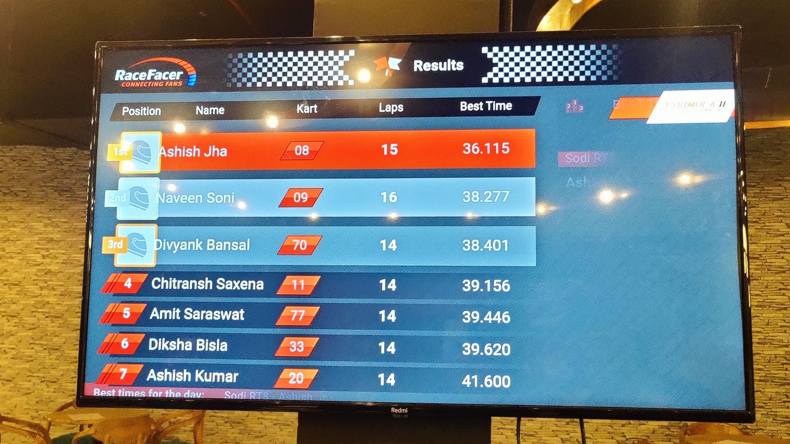 Transforming a casual day of fun into a high-stakes competitive melodrama, he channelled his inner soccer mom personality to cheer his team while he was in the stands. His on-track demeanour on the other hand was a stark contrast. In a display that defied inertia, his dad-bod and ostensibly humble stance, he glided across the track with clean racing lines, stealing speed with the finesse of a cat burglar. Practically invisible on the track, he emerged as the unsung hero, setting an enviable lap time of 36.115 seconds – the fastest of the entire day. That’s Ashish.