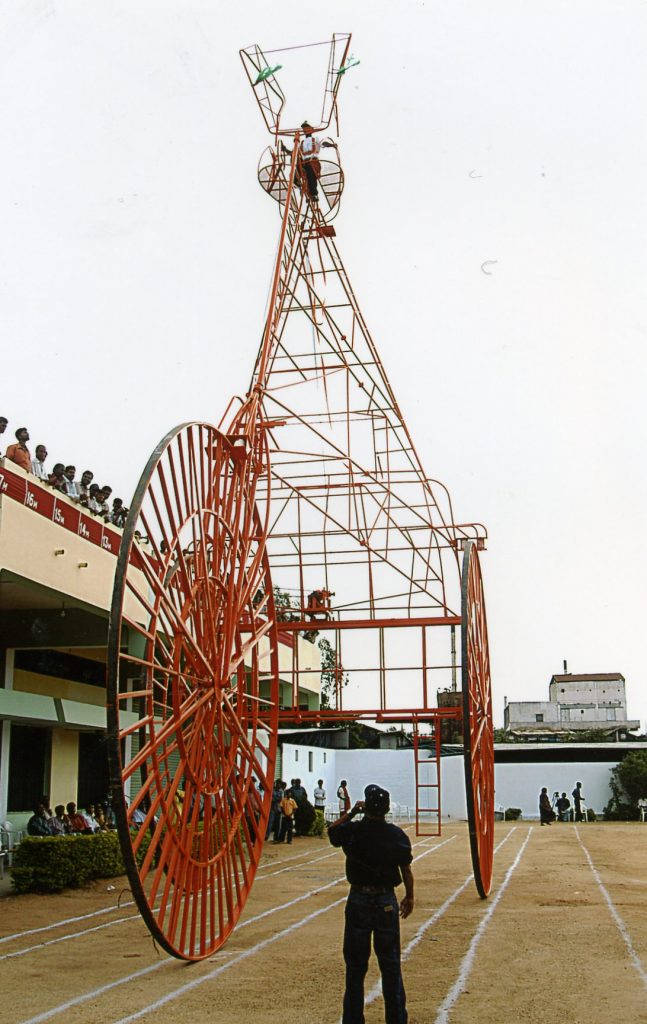 A 41.7-feet-tall tricycle is one such creation and it holds a place in the Guinness Book of World Records (GBWR) since 1 July 2005 for being the largest in the world. But it wasn’t a cakewalk at all. After tasting failure over 55 times in a period of three years, Sudhakar eventually nailed it. “As interesting as it is, there were a lot of failures in this… (but) the Guinness record kept me going,” the proud record holder says.
