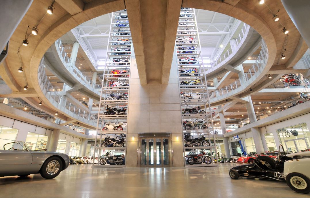 The museum showcases classics from Harley-Davidson, Honda, and Indian — to Showa, DSK, and Cagiva.