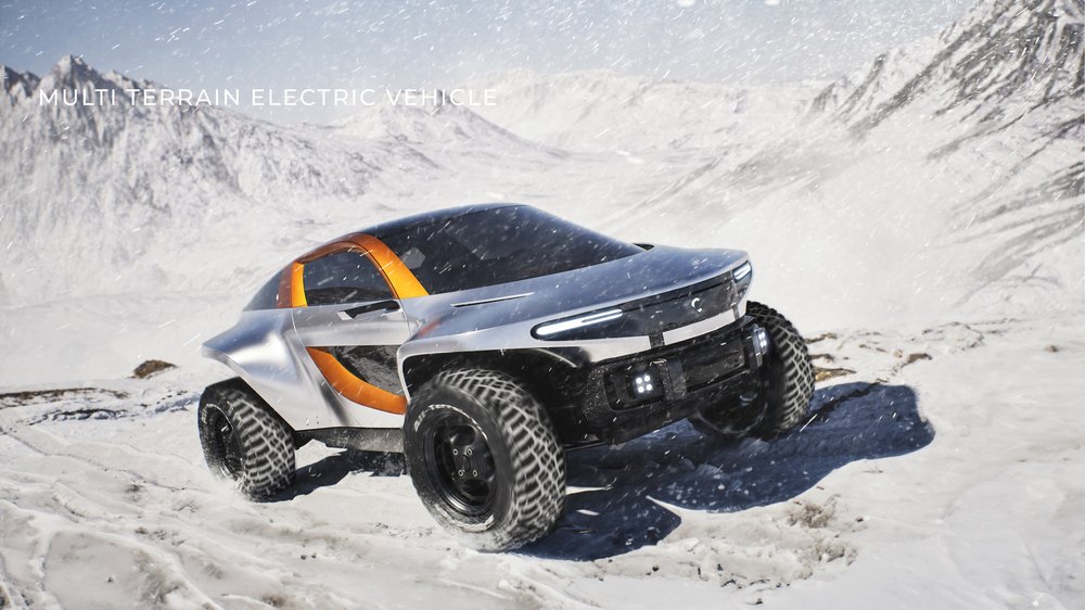 The adventure electric buggy is about 157 inches long and features a modernistic yet rugged exterior look. It sports an accent loop which gets intersected by a strong horizontal structure and flanked by organic forms at the front and rear. It gets large glasses for better visibility while offering a spacious interior. “At the heart of its story is its performance, style and capability, and a design integral to the engineering elements,” Callum explains.