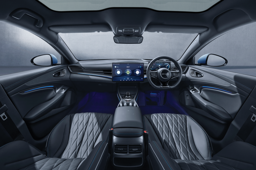 At the rear, the boundless LED taillight connects the waterdrop dot matrix LED lights on both ends. Electronic hidden flush door handles and 19-inch precision blade wheel hub add to the premium-ness of the model while the waterdrop-shaped side mirrors enhance visibility. The sporty black diffuser reduces wind resistance and improves performance.