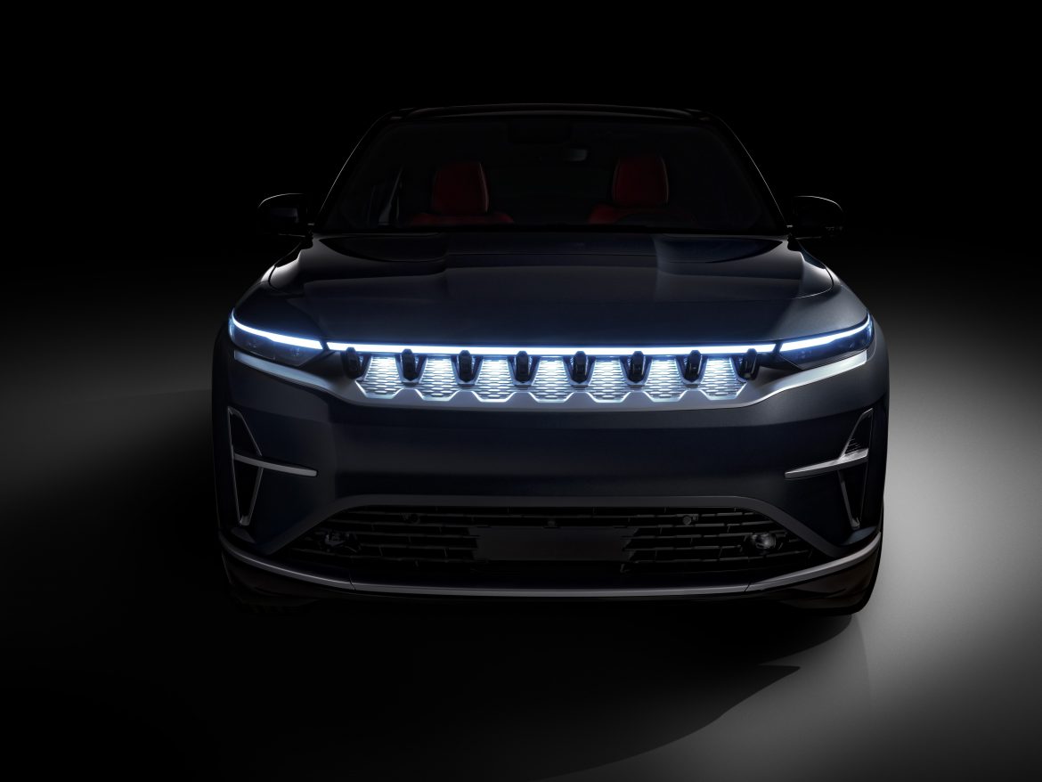 Jeep emphasises that the Wagoneer S’s design is intricately shaped keeping aerodynamic efficiency in mind. The teaser photo showcases a head-on view, revealing a sleeker, less boxy silhouette compared to traditional Jeep models. Noteworthy elements include blade-like side inlets flanking the lower bumper, reminiscent of features found on other upcoming U.S-based electric SUVs, such as the Lucid Gravity. The signature seven-slot grille is illuminated with LEDs, and a solid LED light bar is anticipated at the rear, based on glimpses from the teaser video.