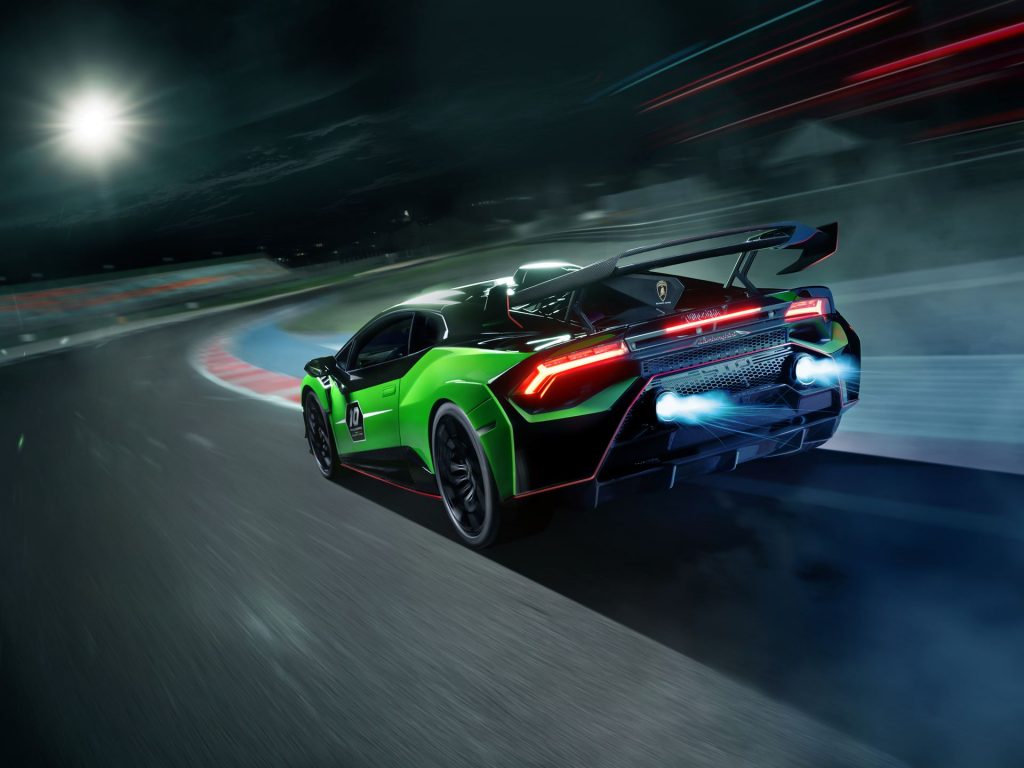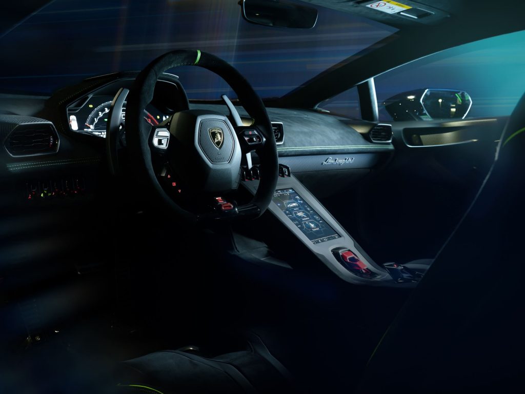 Taking inspiration from the Lamborghini SC63 race car, the Huracan STO SC 10 Anniversario model wears a special two-tone livery. It uses Verde Mantis (green) and Nero Noctis (black) colours combined with a tricolour band running across the ‘cofango’ and roof of the car.