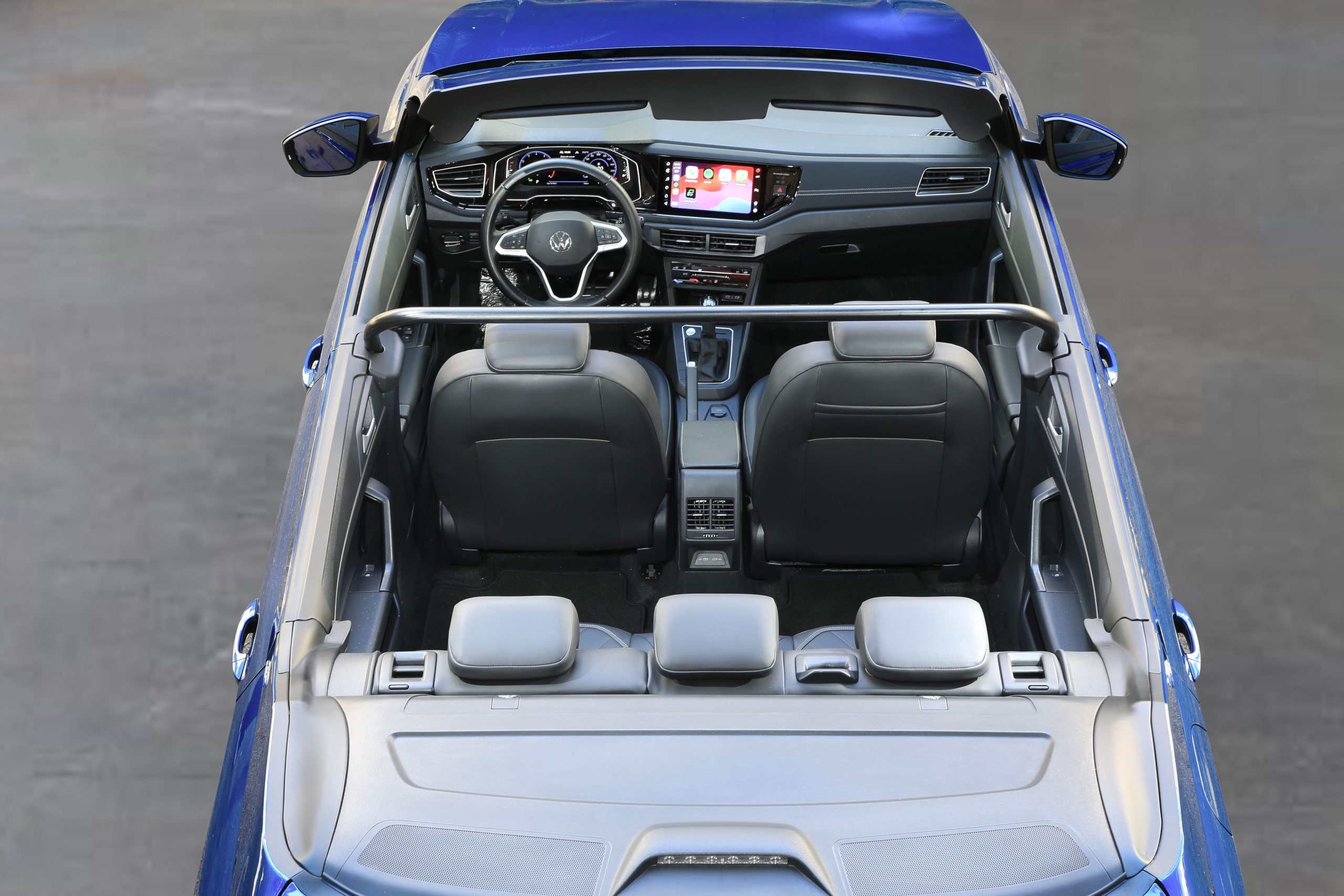 A notable addition to the convertible Virtus is the installation of a transversal bar between the front and rear seats, offering rear passengers a secure grip while standing. This feature enhances safety and stability for occupants, particularly during the vehicle’s operation.