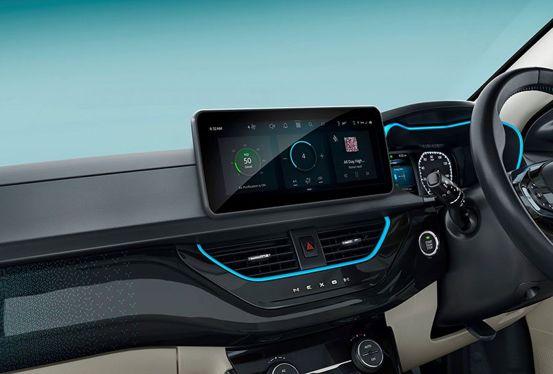 The Nexon EV MAX XZ+ LUX boasts a 26.03 cm (10.25 inch) Touchscreen Infotainment system by HARMAN. The high-resolution (1920X720) High Definition (HD) display ensures a sleek response. This system supports Android Auto and Apple CarPlay connectivity via WiFi. Additionally, it includes a High Definition Rear View Camera, delivering clear visuals. The audio experience is enhanced with sharp notes and extended Bass performance. The Voice assistant, available in 6 languages, features over 180 voice commands in English, Hindi, Bengali, Tamil, Telugu, and Marathi. The upgraded User Interface (UI) further enhances usability. Bookings for the Nexon EV MAX XZ+ LUX are open from today.