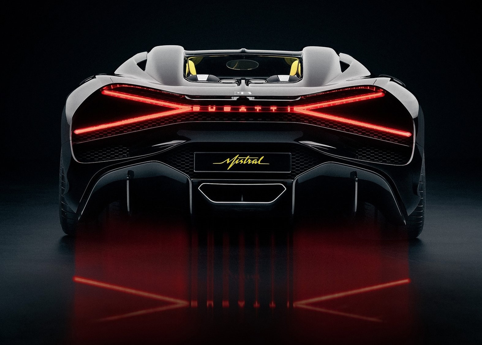The headlights themselves are intricately shaped, incorporating a four-light signature that subtly nods to the W16 Mistral's four-wheel-drive and four turbochargers.