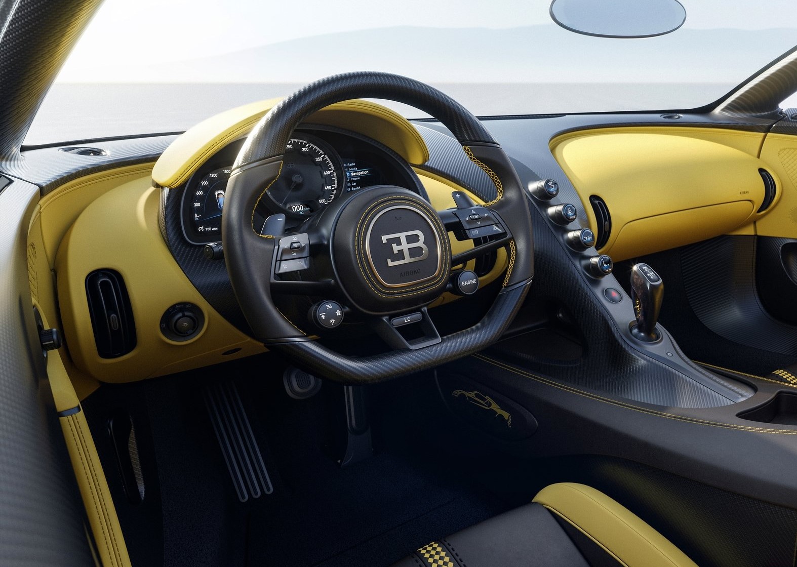 Not only is it an homage to the iconic coachbuilt body, but also to Ettore Bugatti, who chose the black and yellow combination for many of his personal cars, including his Type 41 Royale.