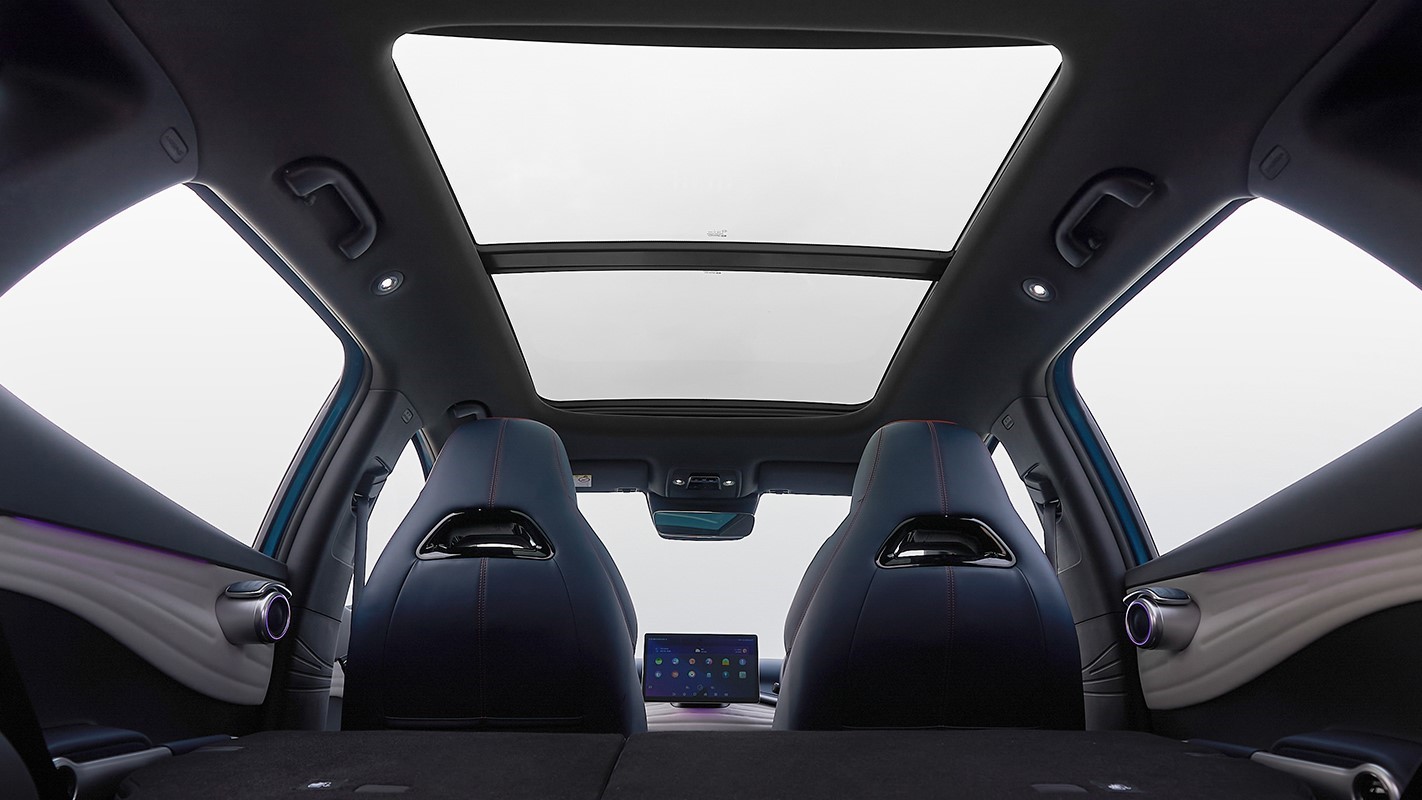 The Atto 3's cabin features a large dual-tone panoramic sunroof, which reduces the feeling of claustrophobia.