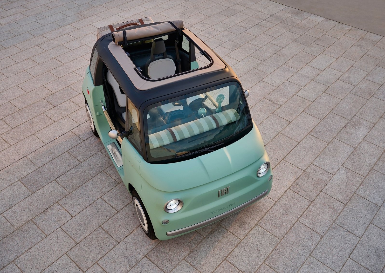 With truly unique accessories - such as the little shower, which makes it the perfect beach essential - a fresh design, and the ability to drive it from age 14 and up, the New Fiat Topolino also embraces a new target audience.
