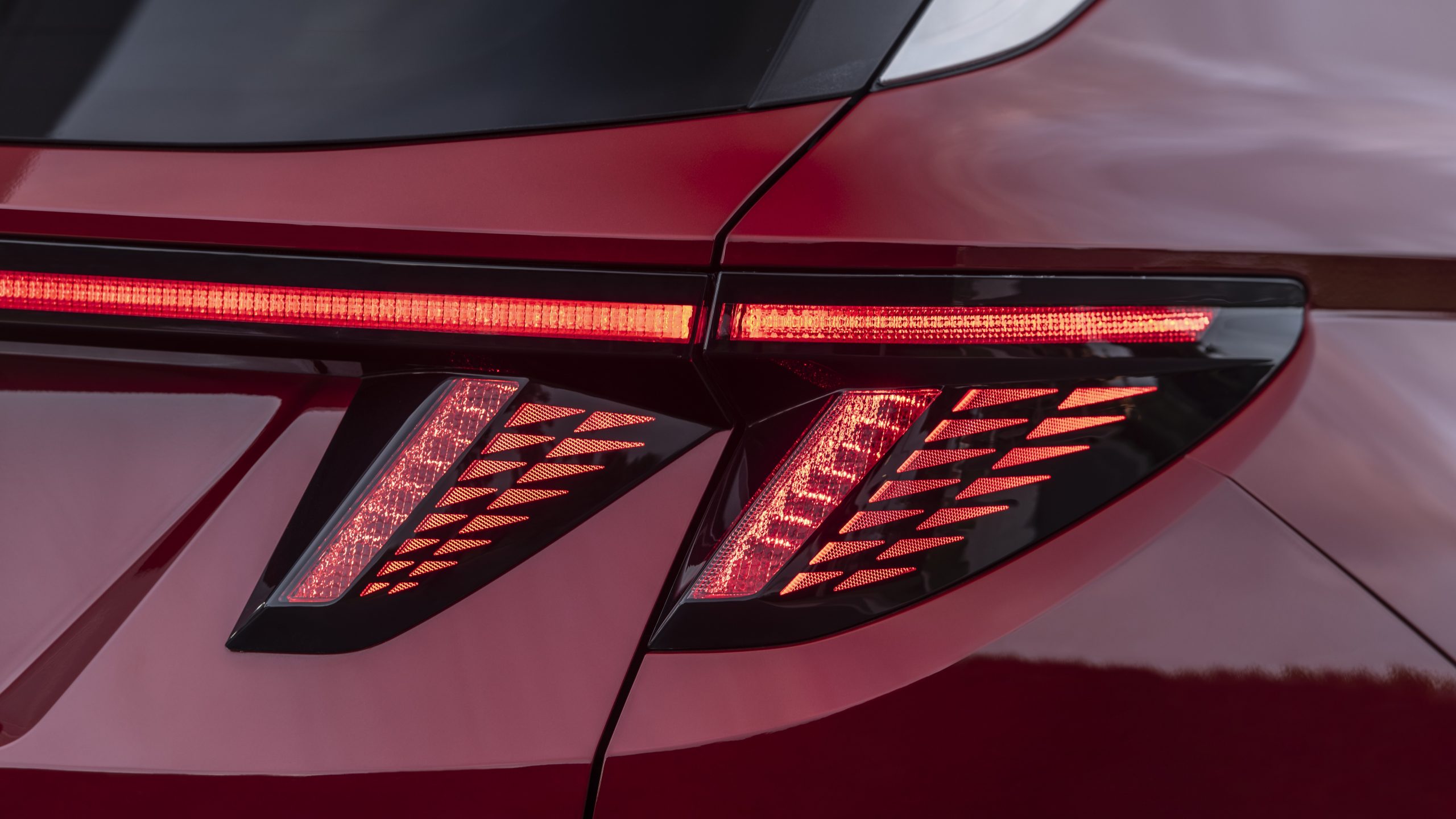 The parametric design theme carries over to the rear, where the full-width tail lamp incorporates half-concealed triangular shapes that are visible when illuminated, echoing the DRL theme in front.