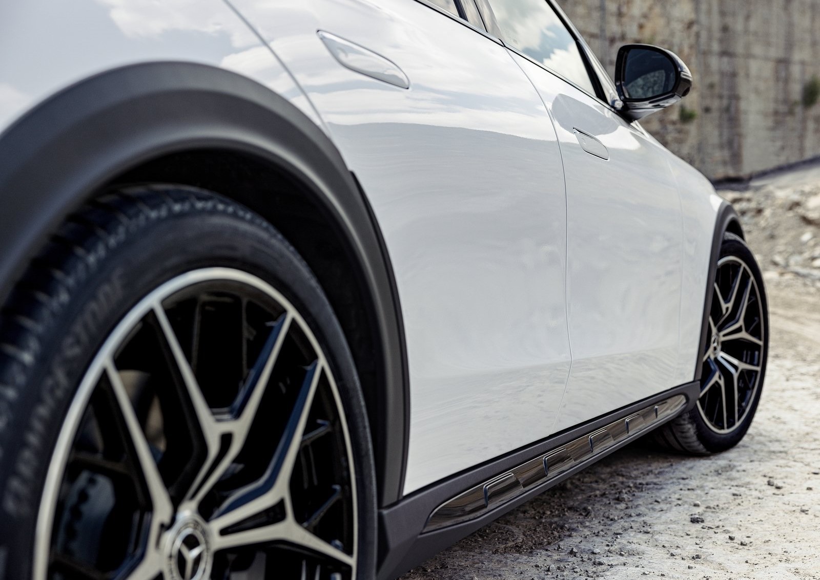 With 4MATIC all-wheel drive as standard, increased ground clearance through AIRMATIC air suspension (also standard) and an off-road driving programme, the new Mercedes-Benz E-Class All-Terrain makes easy work of light terrain, such as dirt roads, on its bigger wheels.