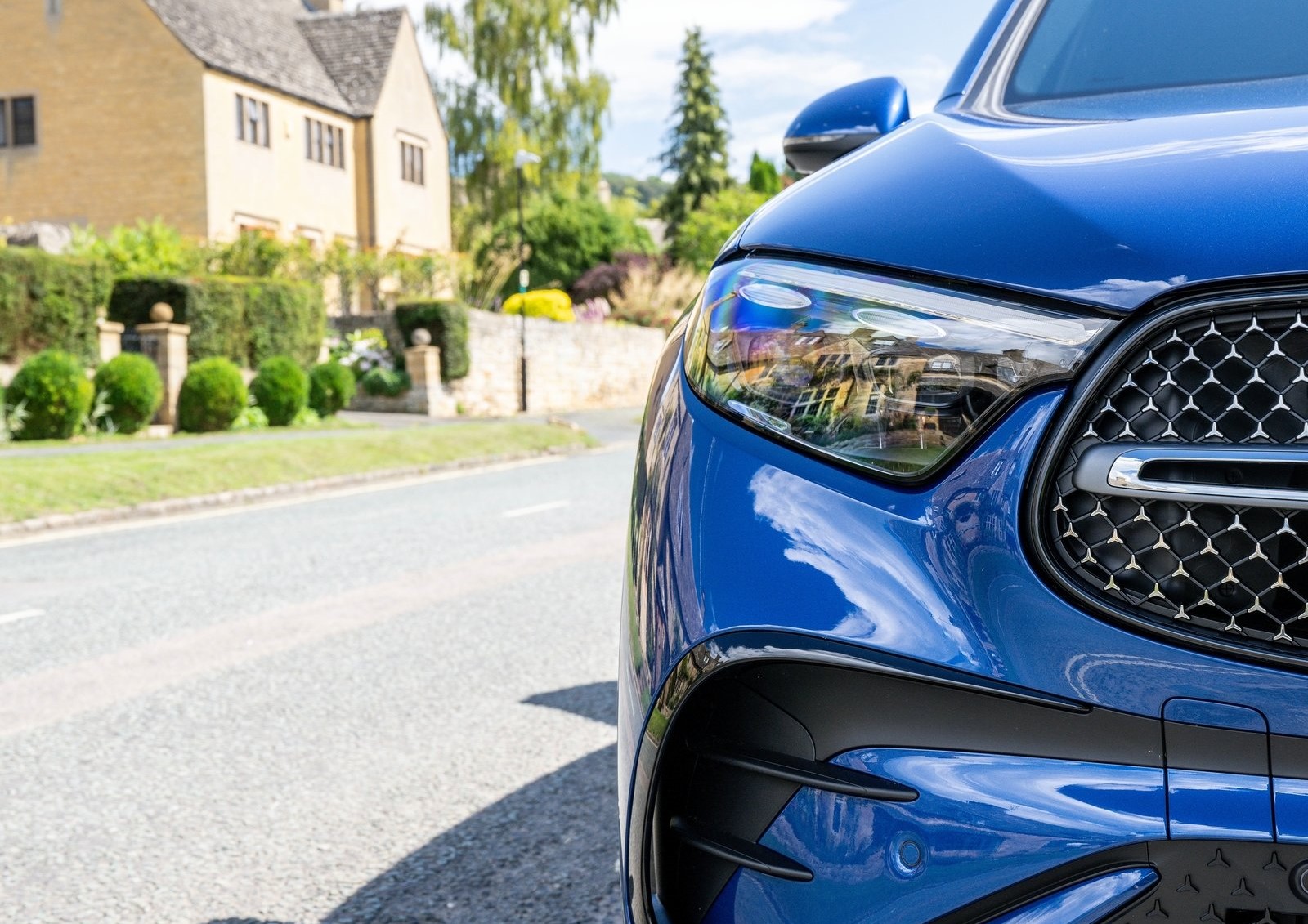 Accentuating the width of the car is the seamless transition from the headlights to the radiator grille. The Mercedes-Benz pattern is standard on the radiator grille cover.