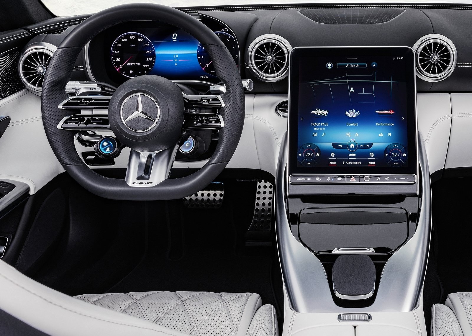 The system in the SL 43 is a direct derivative of the development successfully used by the Mercedes-AMG Petronas F1 Team for many years in the premier class of motorsport.