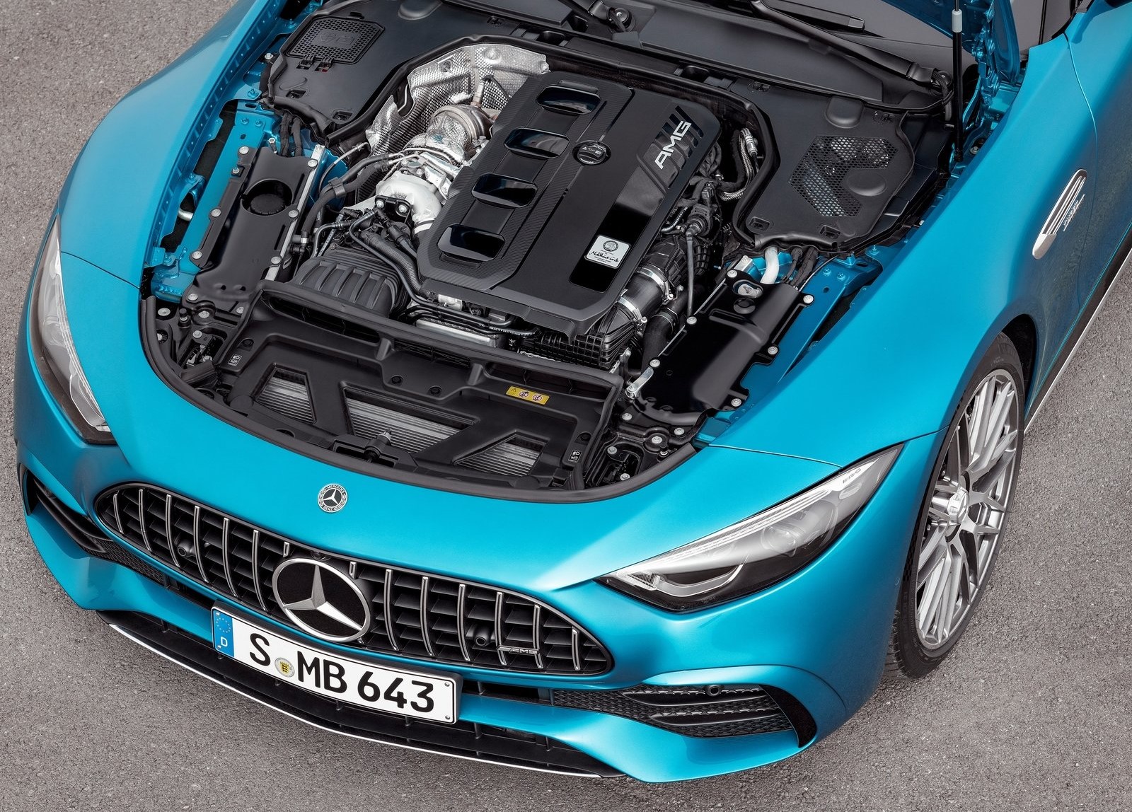 The four-cylinder engine known as the M139, which has long been used transversely in Mercedes-AMG compact models without an electric exhaust turbocharger, is positioned longitudinally in the SL 43.