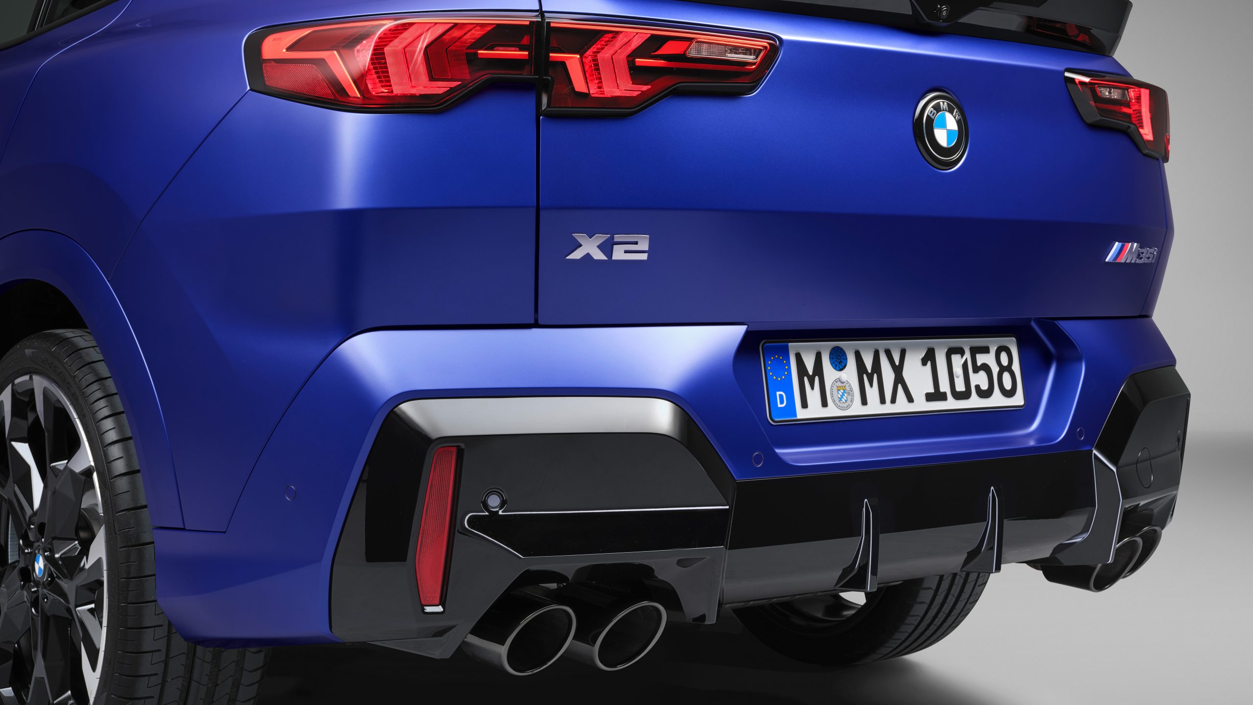 M-specific design features such as the two pairs of exhaust tailpipes integrated into the rear apron give the X2 M35i xDrive a dynamic look.