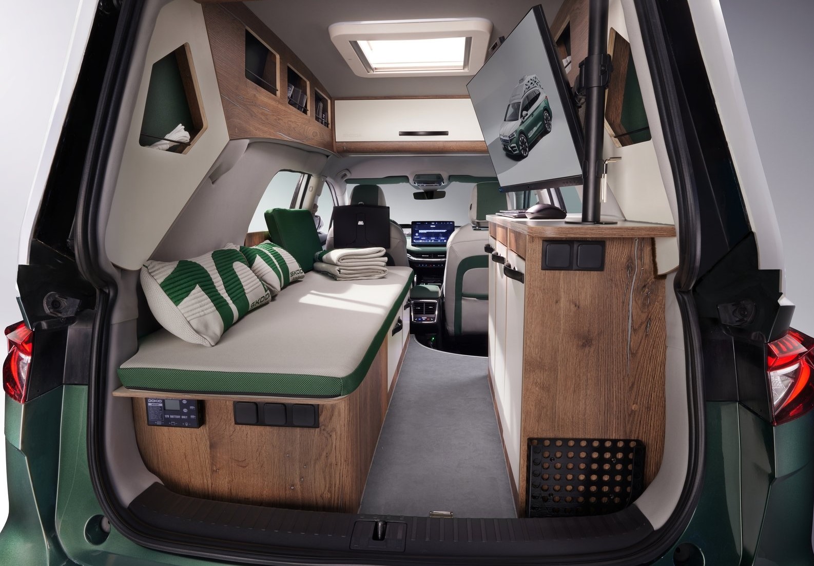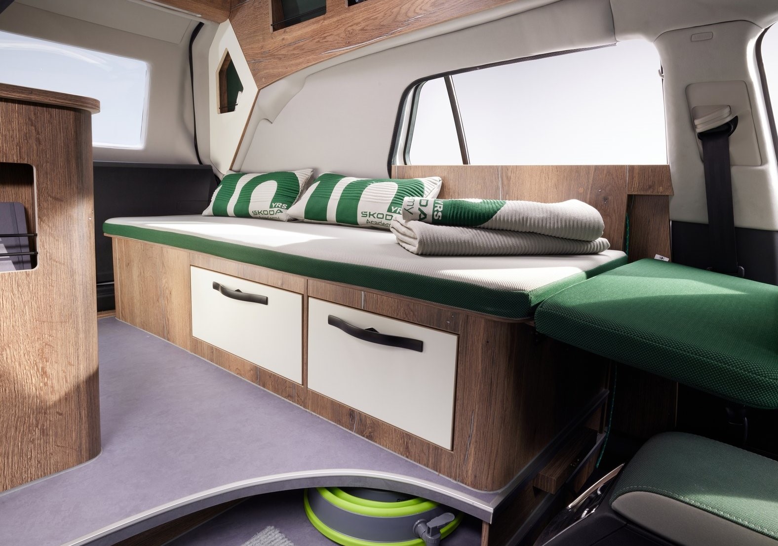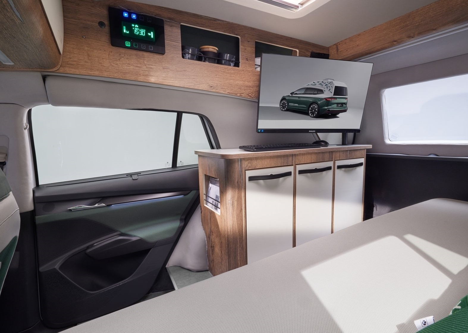 Škoda's ninth student car contains everything a modern mobile office needs: a permanent high speed internet connection, a 27-inch monitor and a docking station, innovative storage solutions, lots of electric plug sockets, and (importantly) an espresso machine