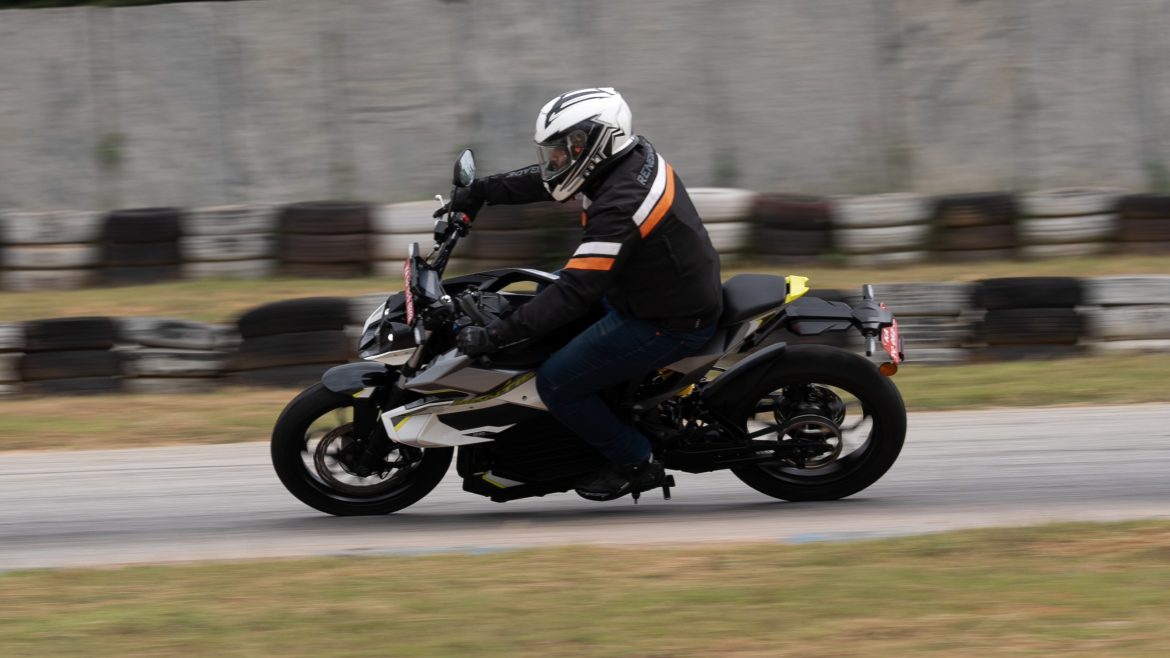 In the corners, the Mantis put up a good show. Orxa claims it has tried to achieve a 50:50 front-to-rear weight distribution and the results highlight that effort. Not to mention, the Mantis is also touted to be the first Indian bike to have an aerospace-grade all-aluminium frame, which helps it tip the scales at a competitive 182kg. Thanks to these weight balancing and weight-saving measures, the Mantis was easy to flick around with neutral handling. The front-end though felt a bit heavy while coming back up in sharper corners. The suspension was tuned fairly stiffly, which helped on the track, but it might not be a good setup for everyday riding. The Ceat Zoom tyres offered reassuring levels of grip.